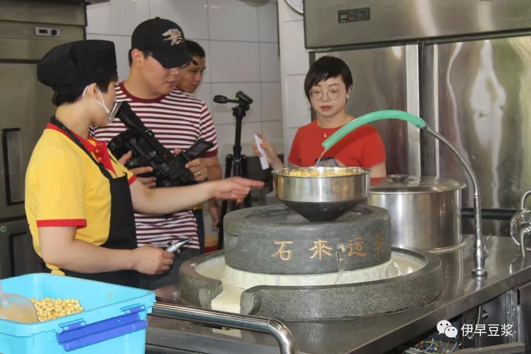 下午3点,一行人光临了伊早豆浆阳光海岸店。原来,神秘的客人——就是汕头电视台《美食潮》栏目的编导博䆳,和她的食评团队以及拍摄团队。小E了解到,《美食潮》栏目此次前来,是对伊早品牌产品的制作过程进行拍摄,实地采访和现场食评。
